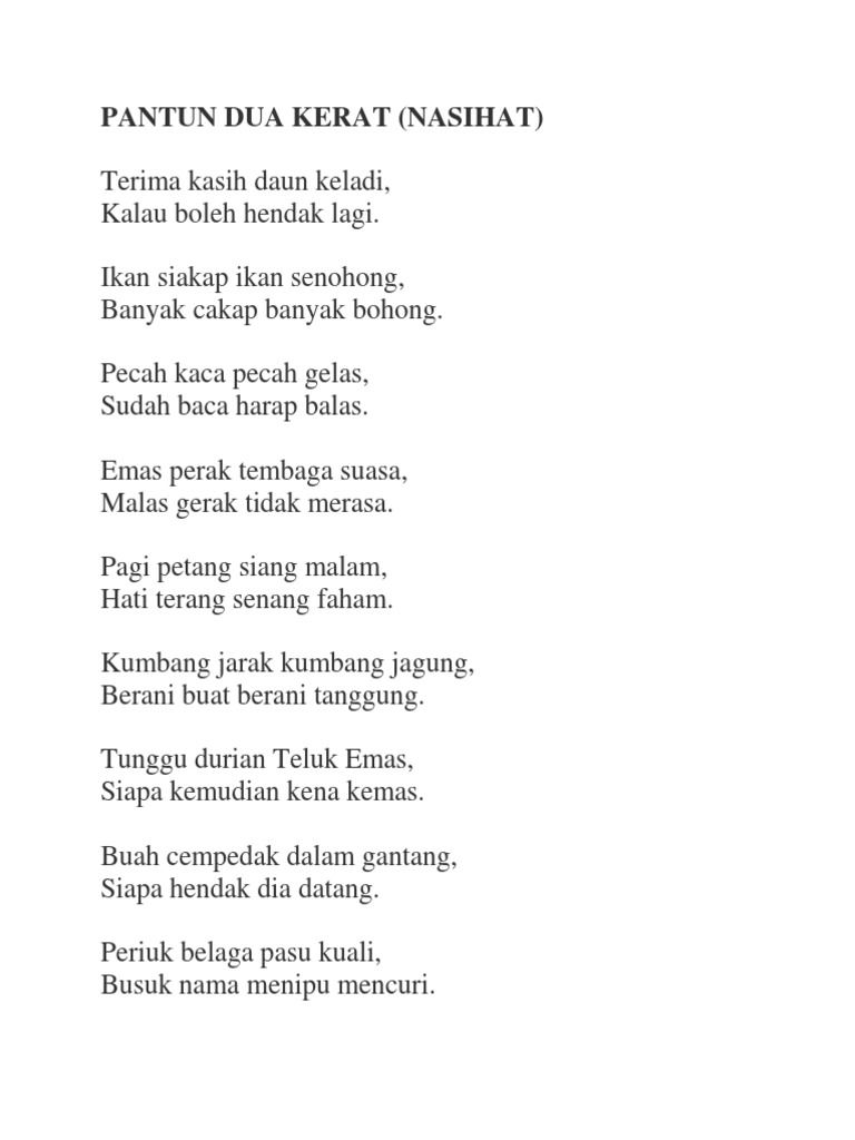 Kalau boleh hendak lagi Hal ini sebagaimana pantun dua kerat Melayu lain yang wujud seperti berikut. Sape bl0m makan meh ak blanje. VIVA MAAHAD PONTIAN.